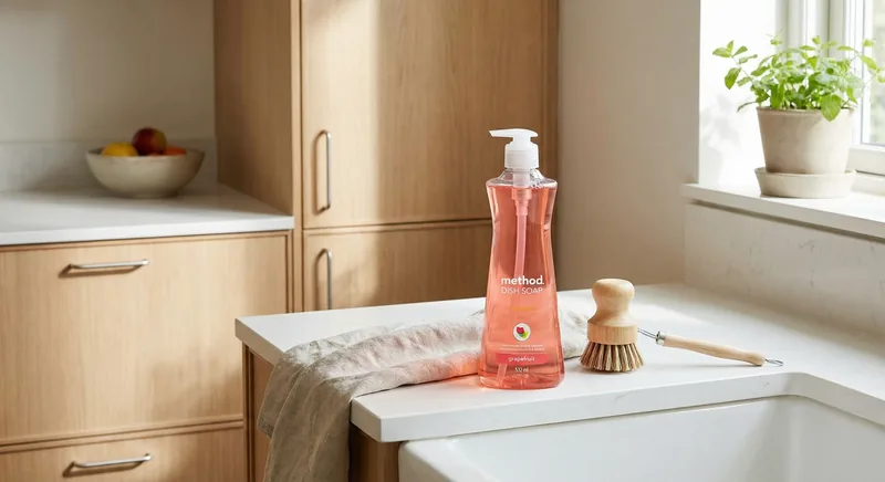Method Dish Soap med Grapefruit-doft är ett plantbaserat diskmedel för handisk som lutar och doftar som en boutiquetvål. Koncentrerad formel — litet ger mycket skum.