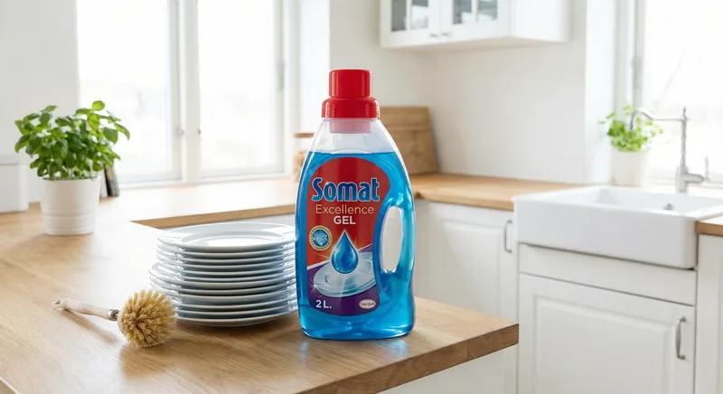 Somat Excellence Diskgel är ett flytande diskmaskinmedel som löser upp snabbare än tabletter och aktiveras redan vid 30°C — sparar energi på varje disk.