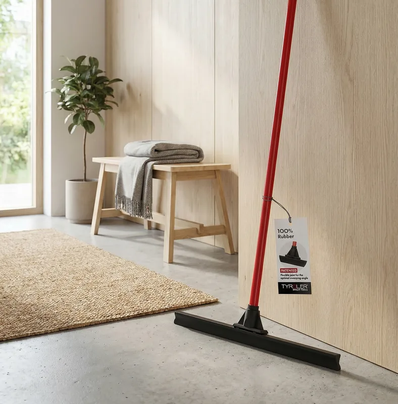 Ergonomiskt T-handtag och utbytbar gummi-skiva. Stål i industrikvalitet. Passar standardmoppstång 22 mm.